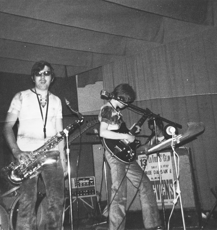 L’orchestre s’est formé en 1972 puis il a énormément tourné dans la région pendant les années suivantes. Composé de musiciens Tourangeaux et Saumurois, d’Alain Dureau au clavier, de Patrick Breheret à la batterie, de François Chamaillard à la trompette, de Jean-Pierre Lion à la basse et de Jacky Voyer. On peut voir ce dernier sur la photo, tout jeune en 1972, à la guitare. Ce qu’on ne voit pas sur cette reproduction en noir et blanc mais seulement sur l’original en couleur, c’est qu’il porte un somptueux pantalon couleur framboise écrasée !