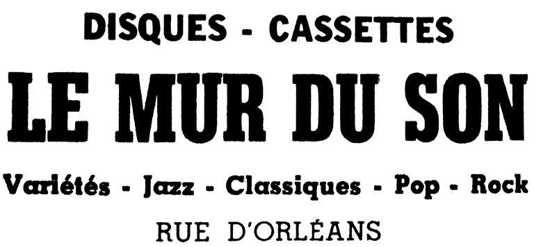 Le rendez-vous des fans de musique des années soixante-dix, magasin de disques aux murs laqués façon cosmique pop tenu par Rose et Alain Plard rue d’Orléans. Avec un peu d’effort, il est possible de s’entasser à quatre dans l’une des cabines pour écouter le dernier Led Zep, avant de se le faire offrir à son anniversaire.