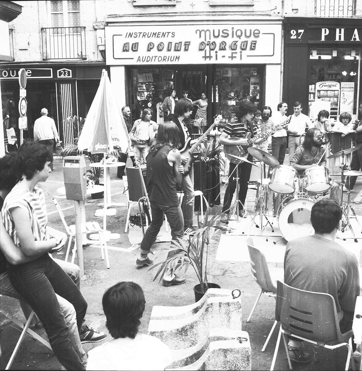 En 1982, année de création de la Fête de la musique, ce sont la fanfare et quelques musiciens amateurs avec leurs instruments acoustiques qui sont descendus dans les rues. L’année suivante, de rares groupes de musique amplifiée commencent à s’installer aussi sur les trottoirs et sur les places car il faut un branchement électrique. Gilles Gouin et le Point d’Orgue, place du Puits-neuf et le magasin Lidae, rue d’Orléans, ne ratent pas l’occasion de mettre en avant leur activité en sortant les câbles depuis leurs commerces.
