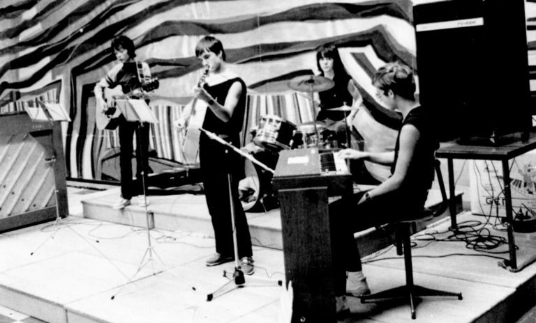 Au milieu des années 80, des jeunes, de plus en plus jeunes, commencent à faire leur gammes. Ils seront les acteurs, dès le début des années 1990, d’une sorte d’âge d’or de la scène musicale amplifiée Saumuroise. Sur la photo ci-dessus, le groupe Ouragan, en 1983, au collège Delessert, avec FrédéricP’tit FredGouin tout à gauche à la guitare (le jeune frère de Gilles Gouin), Frédéric Girard à la batterie, Patrick Duport au clavier (il sera ensuite batteur).