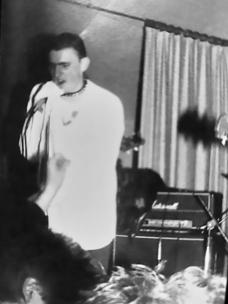 Vincent Magrangeas, chanteur d’IMP, habillé d’une camisole, en 1982. Coll. V. Magrangeas.