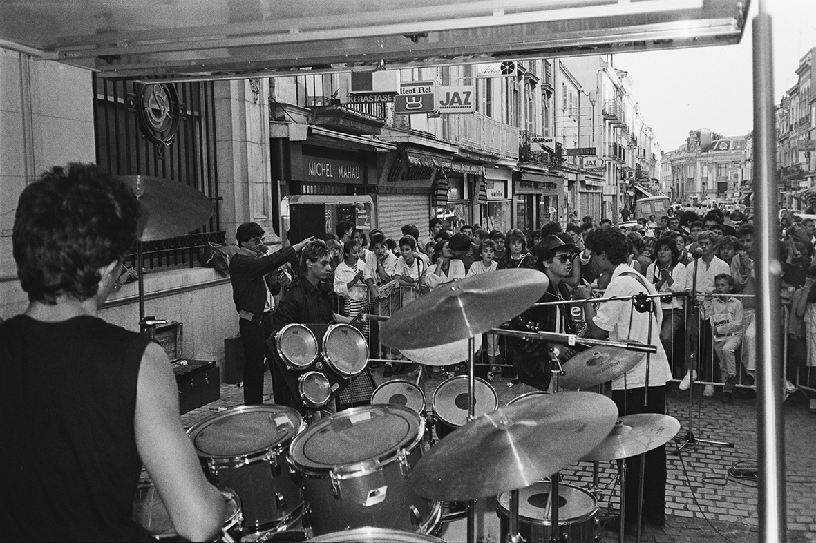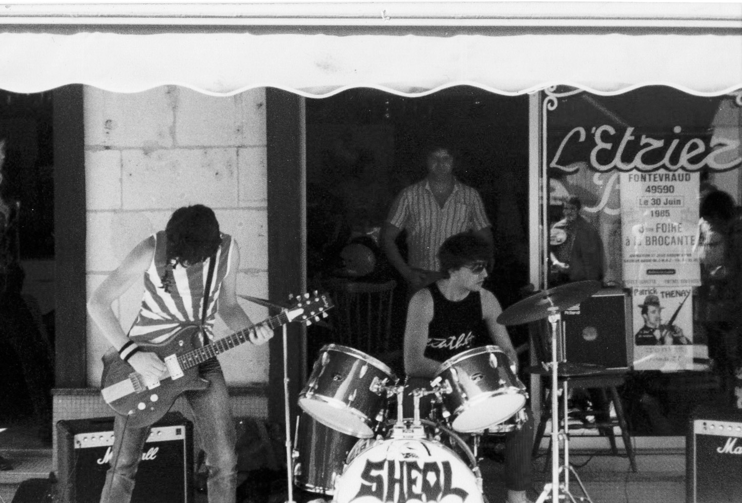 Sheol pendant la fête de la musique 1985, devant l’Étrier, rue Courcouronne. Coll. Patrick Duport.